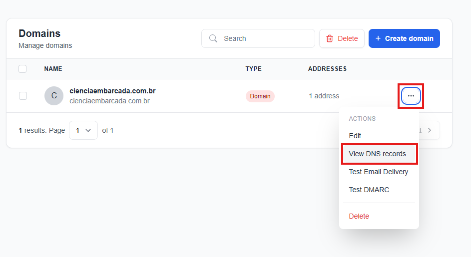 Em seguida, clique nos 3 pontinhos e vá na opção “View DNS records”.