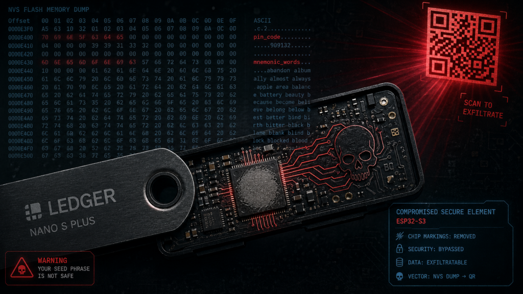 Para quem me conhece, sabe que o ESP32-S3 é um microcontrolador que aparece com frequência nos meus projetos e discussões. É um chip excelente, com bastante poder de processamento para aplicações IoT. Mas neste caso, ele foi usado para substituir o Elemento Seguro certificado Common Criteria EAL5+ da Ledger Nano S Plus original — é a partir daqui que se inicia o ataque.